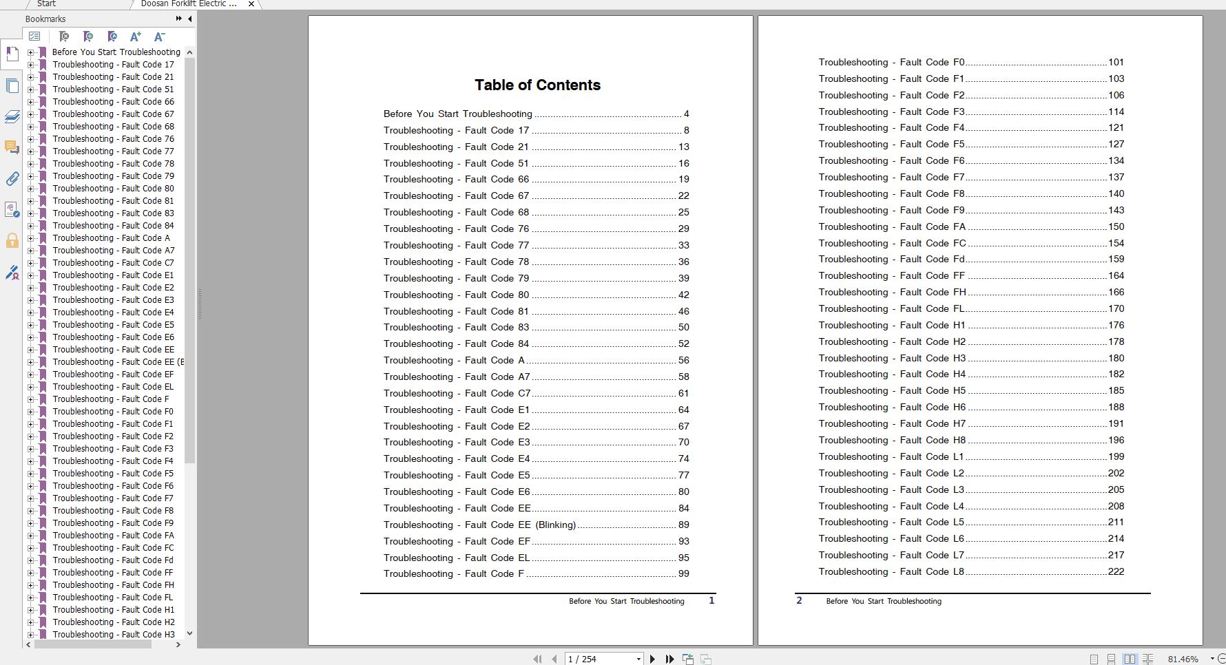 Doosan 7 Series Troubleshooting Fault CodesSize: 69.7 MBMachine: Forklift Machine Model: 7 SeriesPages: 254 Pages