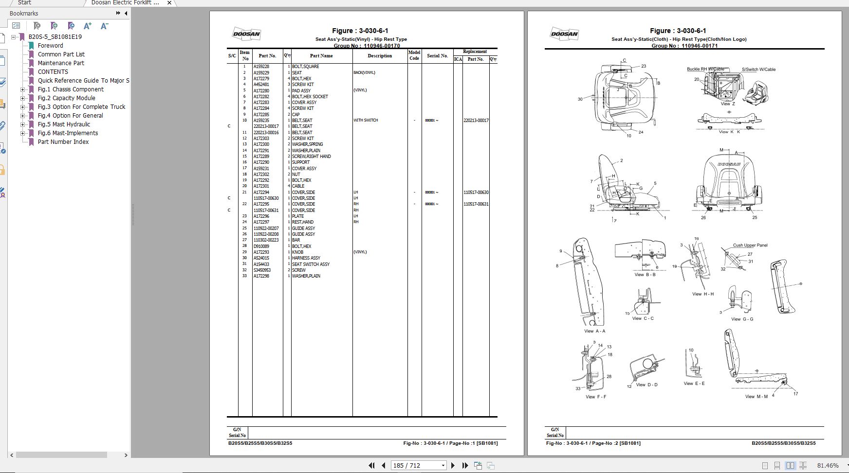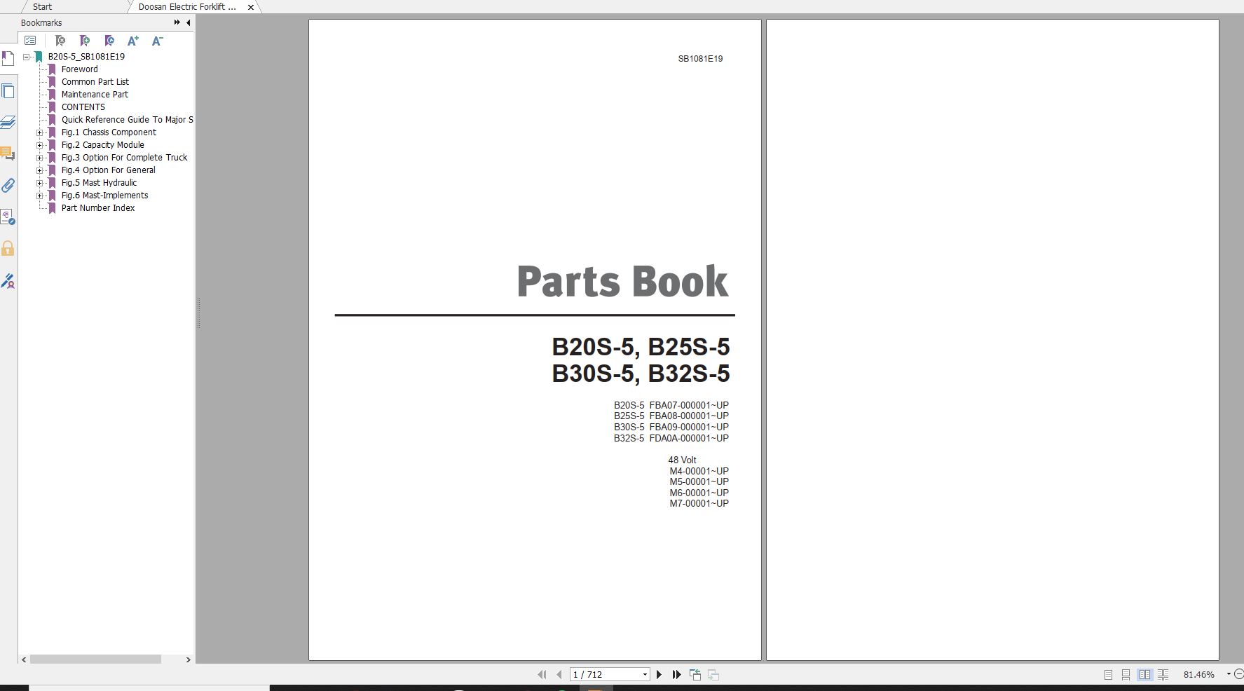 Doosan B20S-5 B25S-5 B30S-5 B32S-5 Part Book SB1081E19