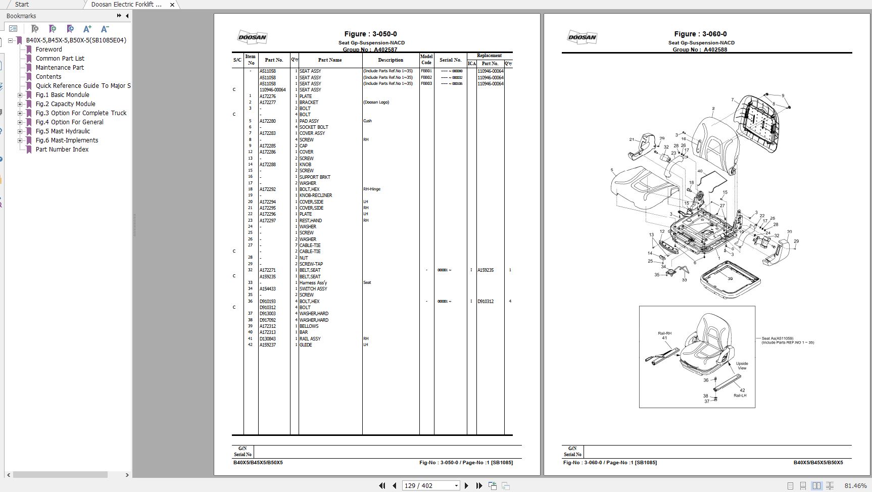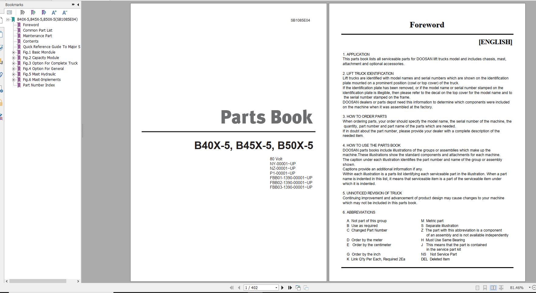 Doosan B40X-5 B45X-5 B50X-5 Part Book SB1085E