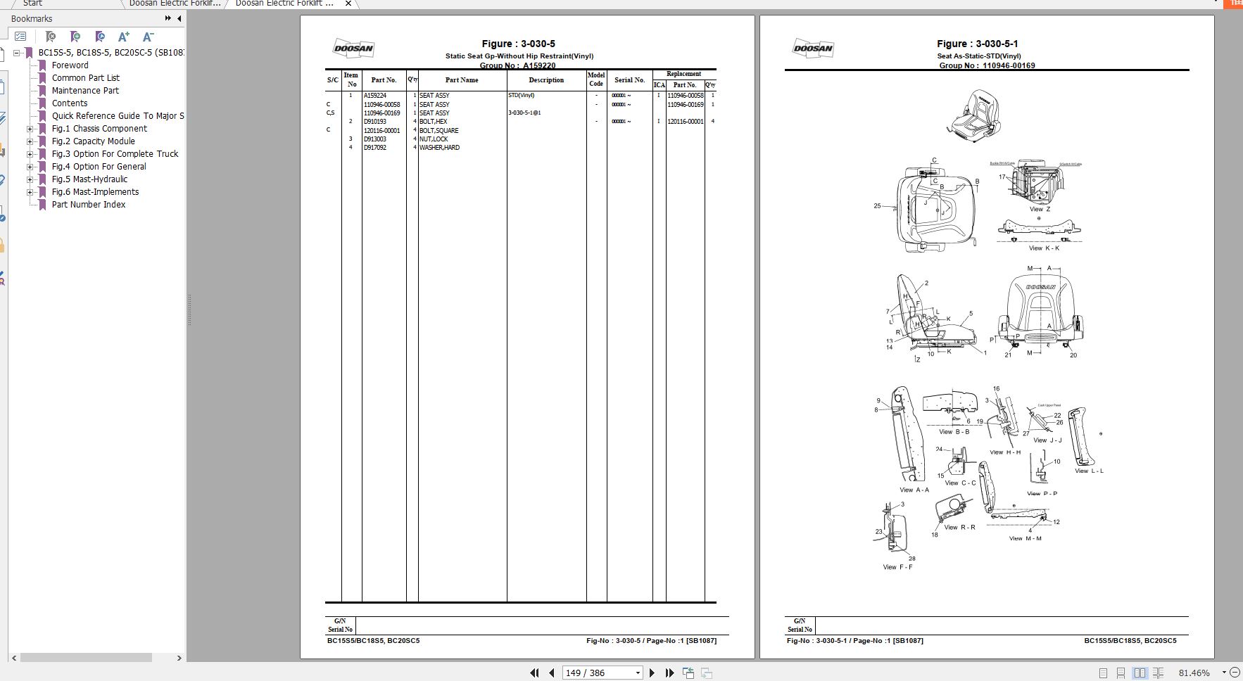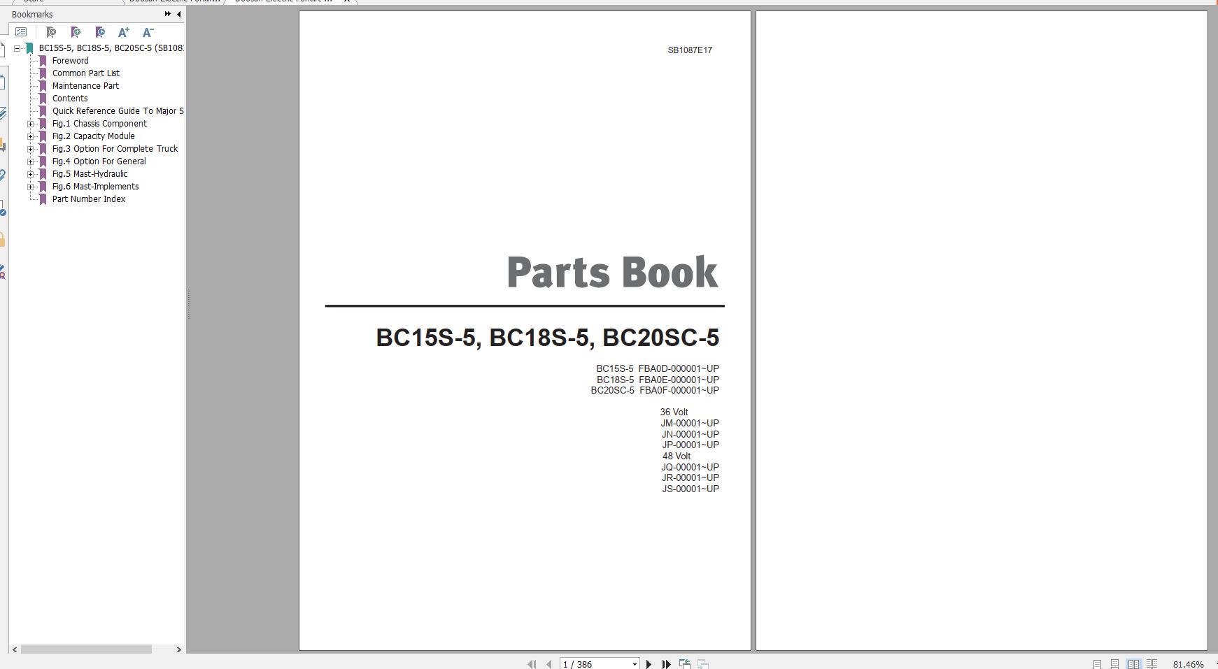 Doosan BC15S-5 BC18S-5 BC20SC-5 Part Book SB1087E17