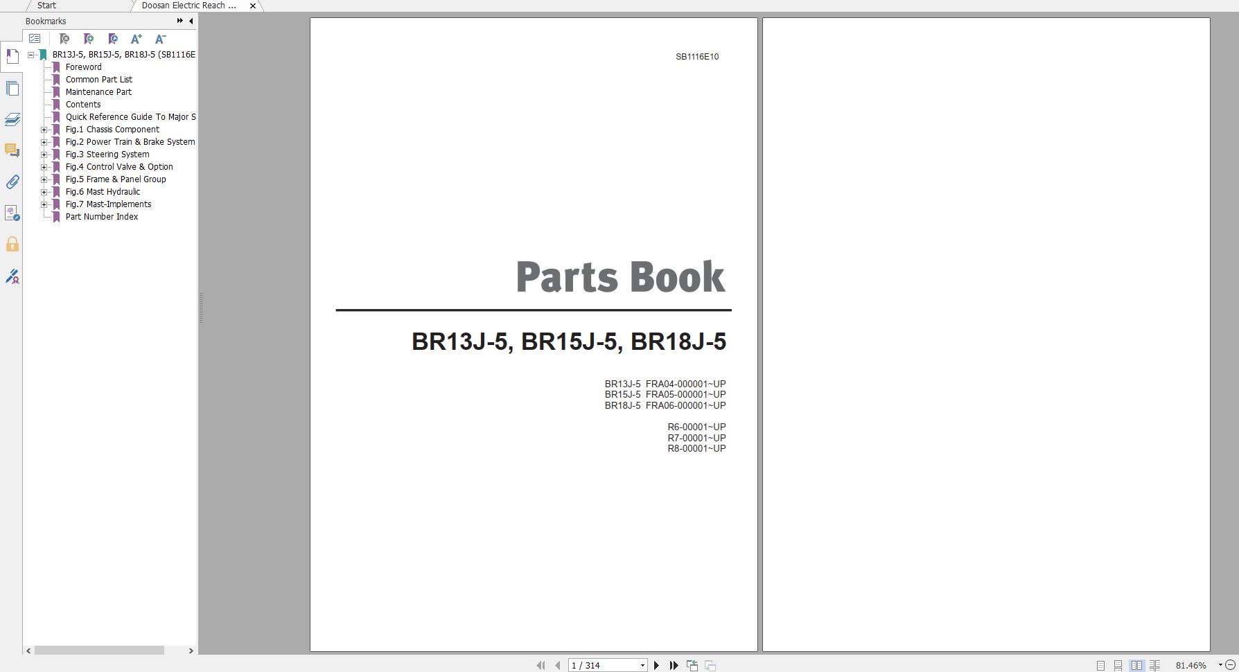 Doosan BR13J-5 BR15J-5 BR18J-5 Part Book SB1116E10