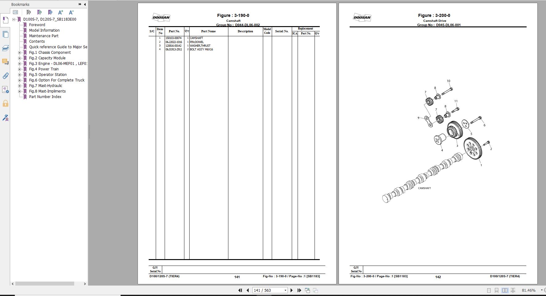 Doosan D100S-7 D120S-7 Part Book SB1183E00