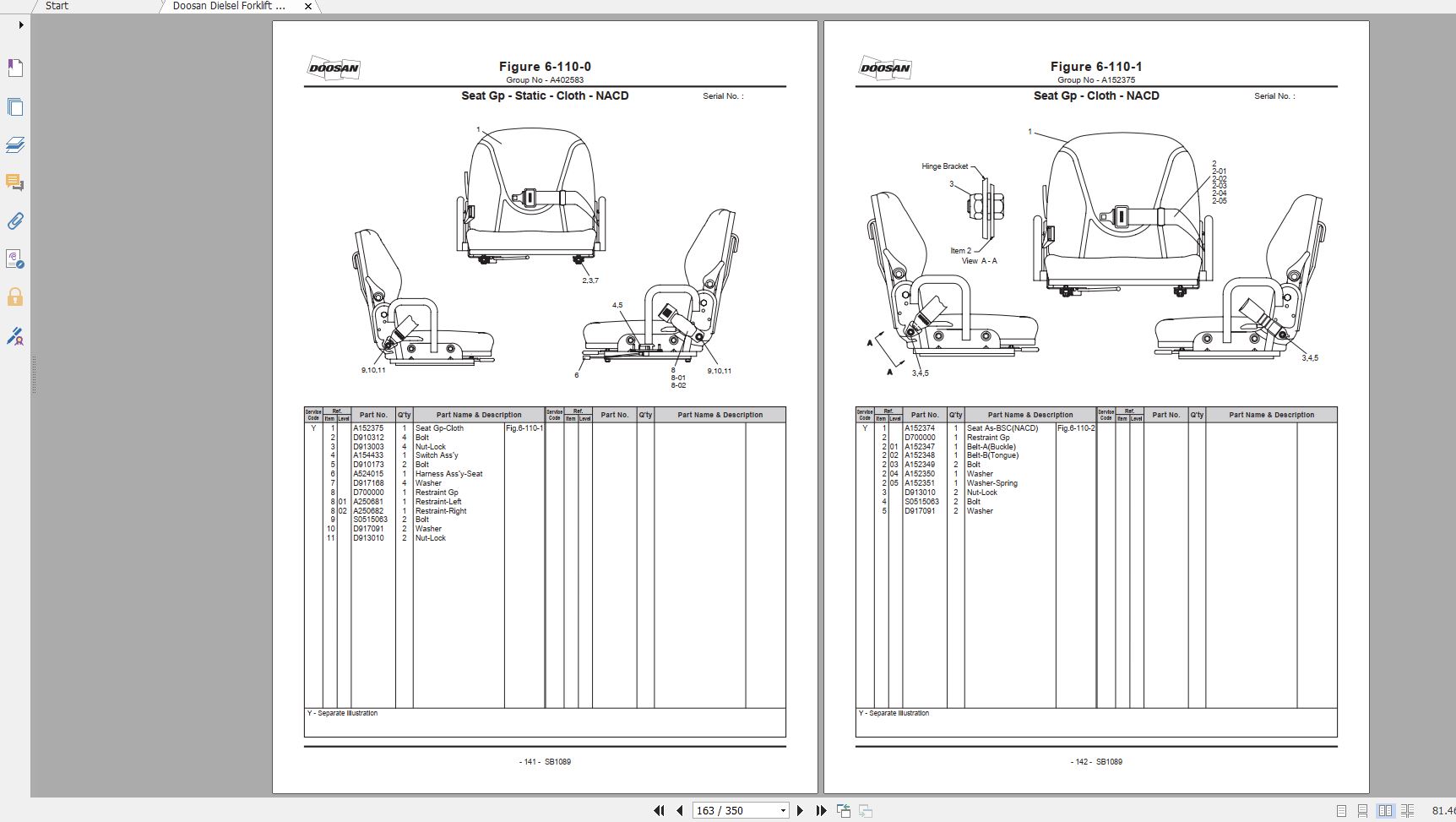 Doosan D15S-5 D18S-5 D20SC-5 Part Book SB1089E07