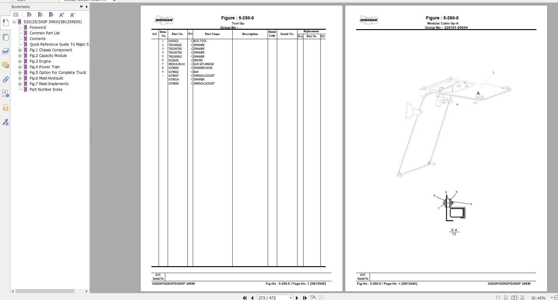 Doosan D20G D25G D30G Yanmar Tier 3 34KW Part Book SB1254E00