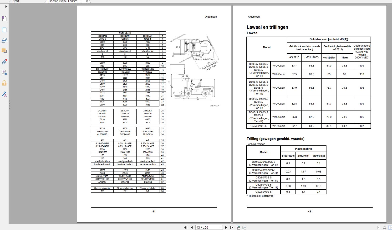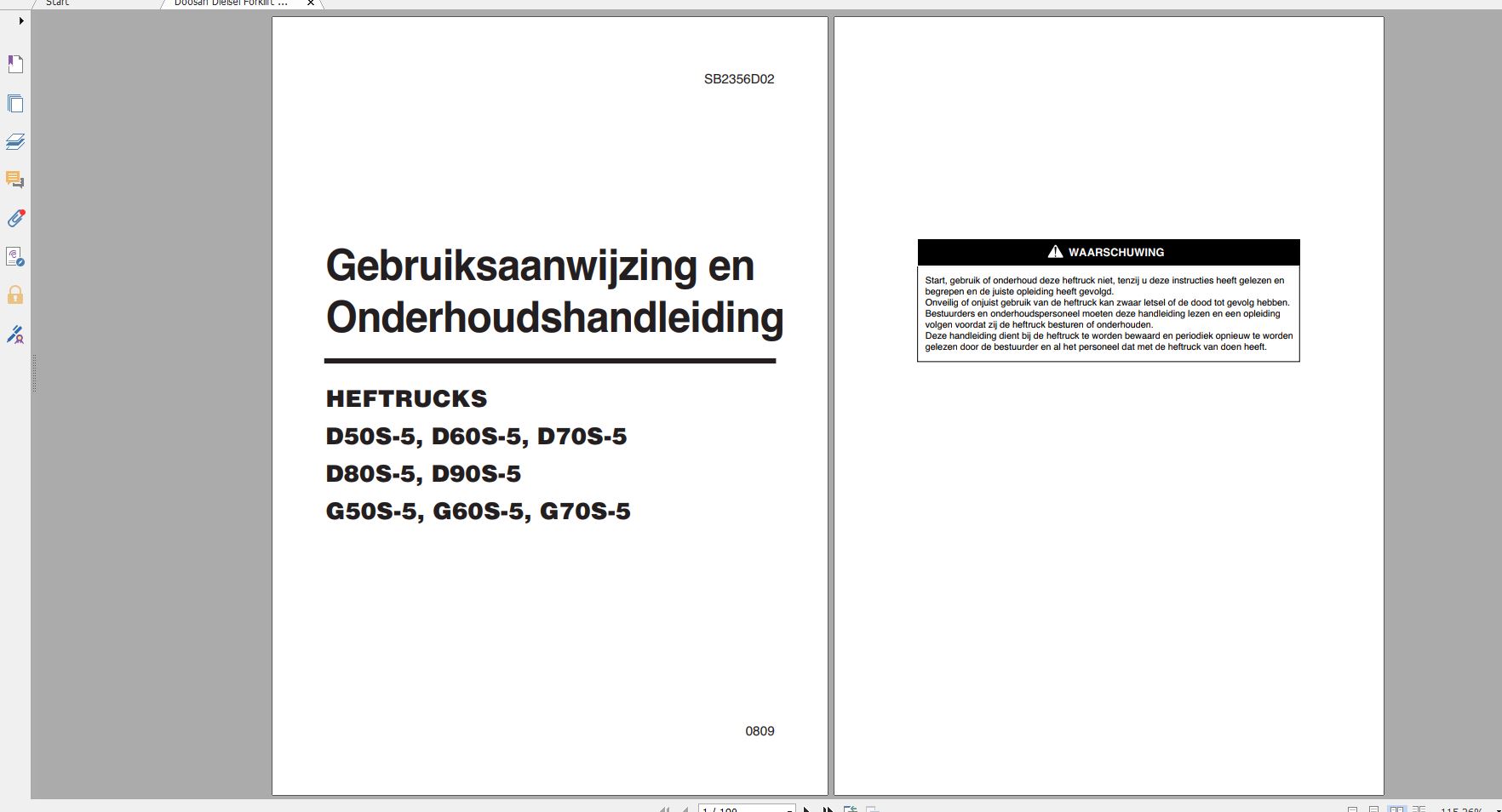 Doosan D50S-5 G70S-5 Instructions Maintenance Manual SB2356D02