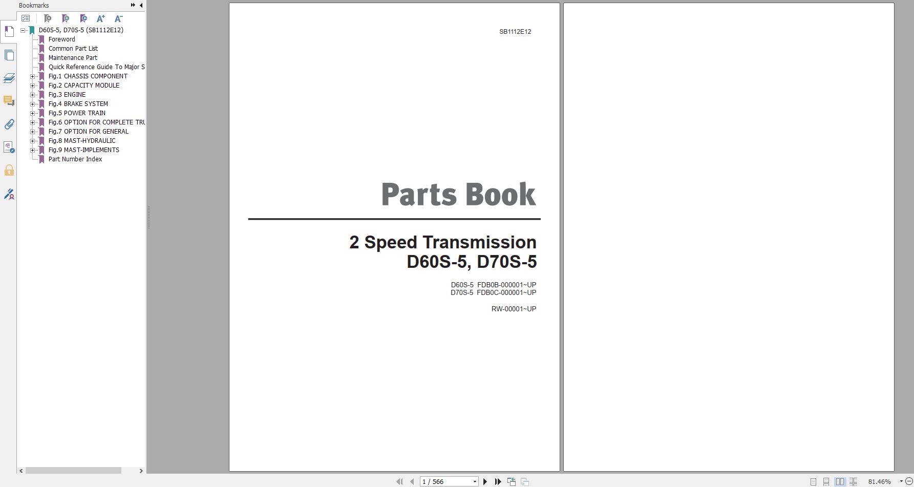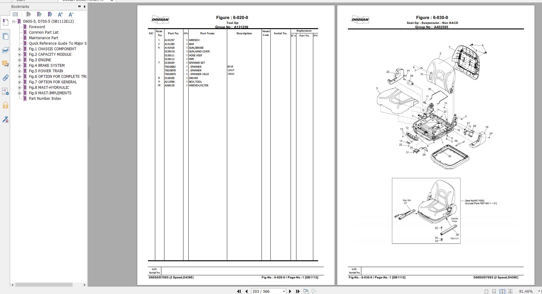 Doosan D60S-5 D70S-5 Part Book SB1112E12