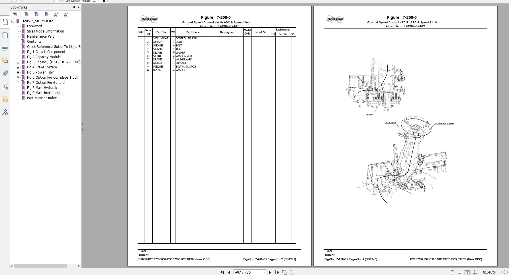 Doosan D20S-7 D25S-7 D30S-7 D33S-7 D35C-7 Part Book SB1243E02