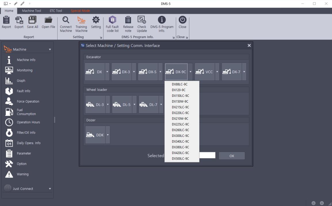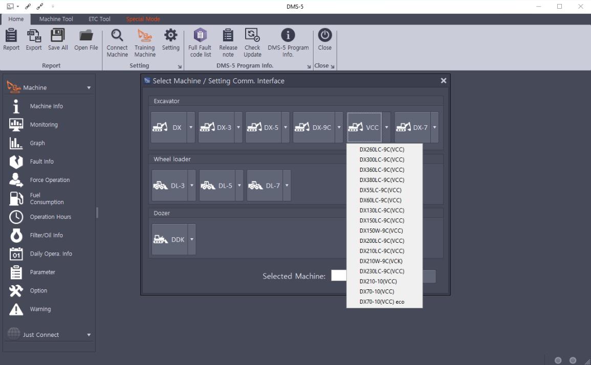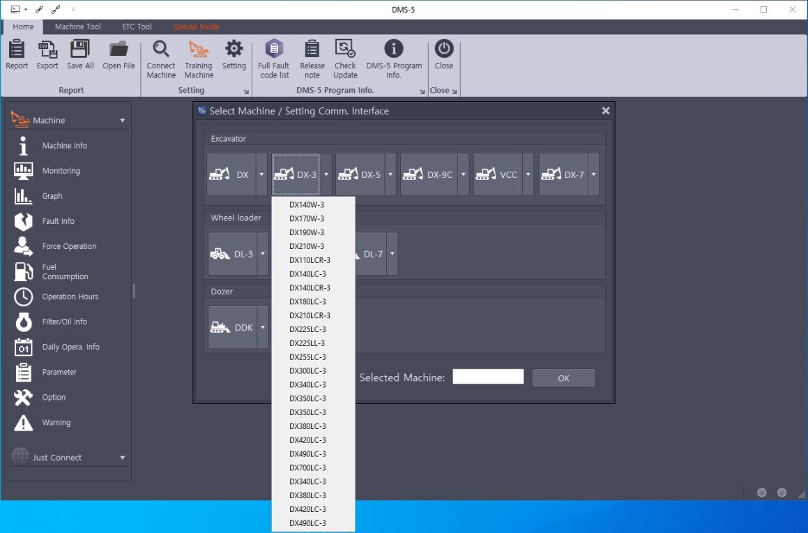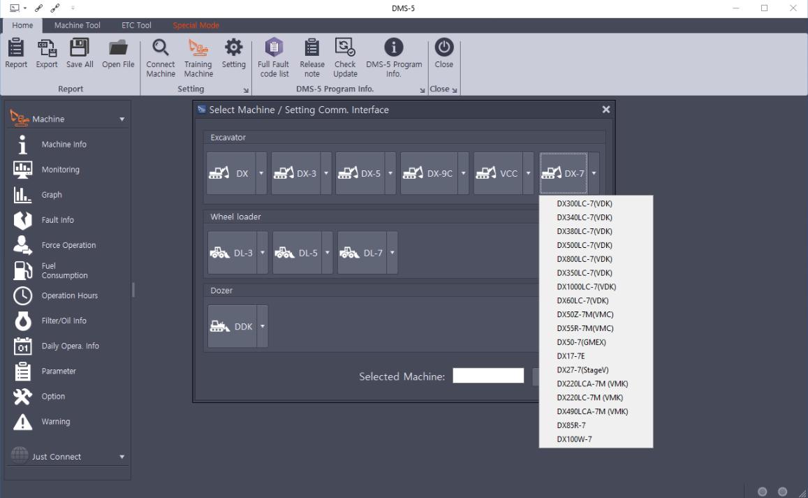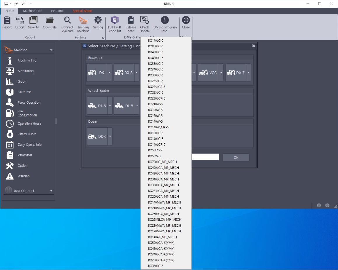 Program: Doosan Excavators, Wheel Loader Monitoring Program