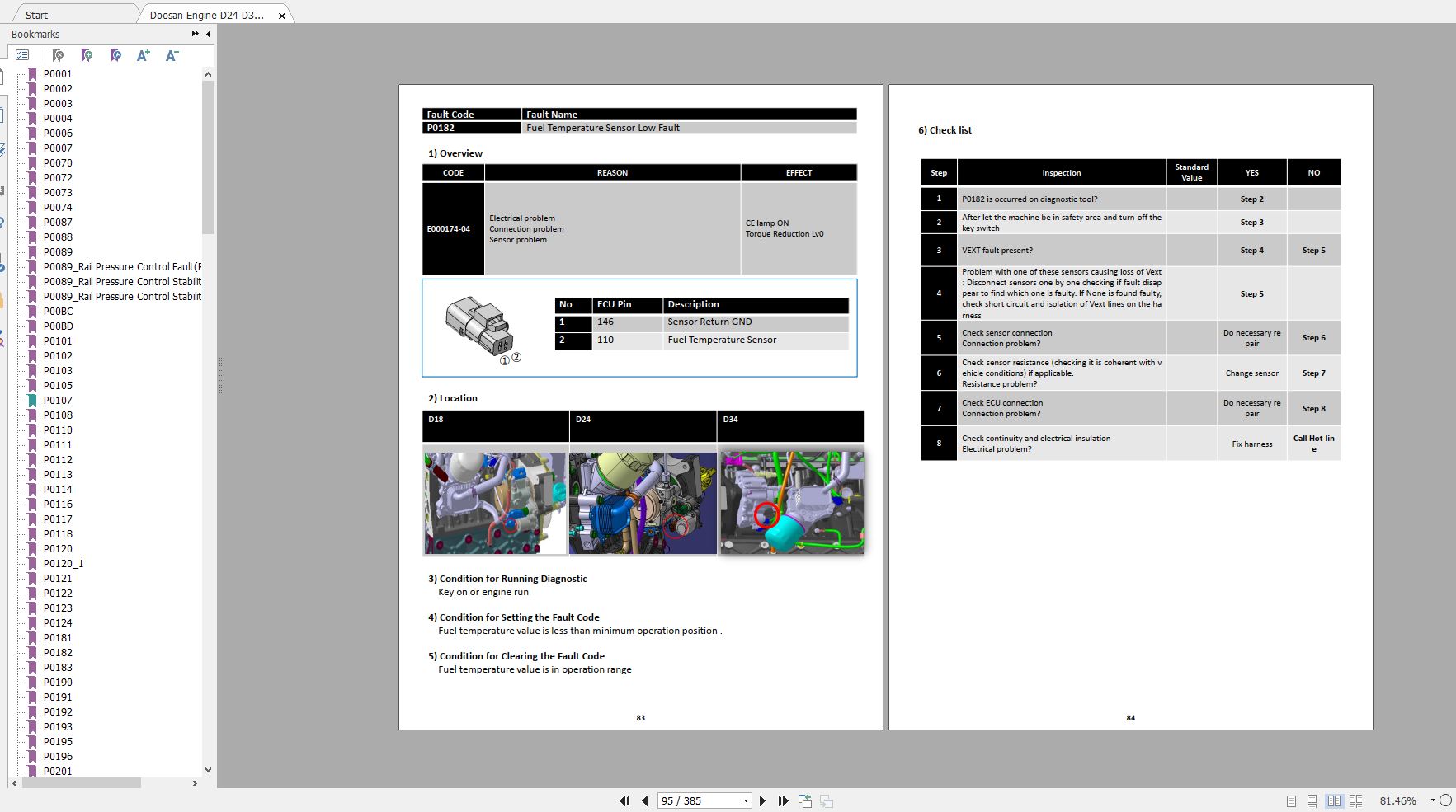Doosan Engine D24 D34 ECU DTC Troubleshooting Fault Codes SB4453E00
