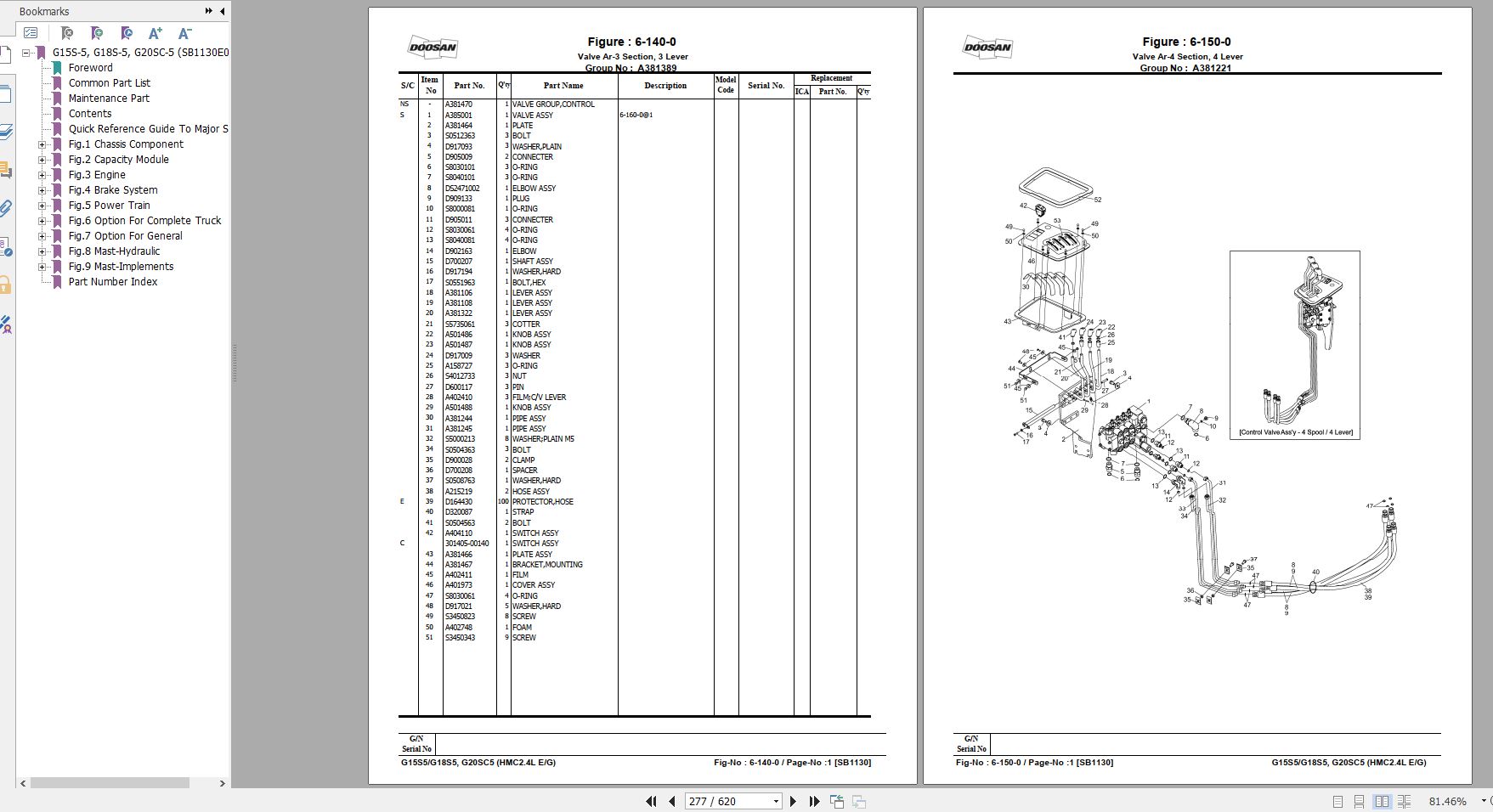 Doosan G15S-5 G18S-5 G20SC-5 Part Book SB1130E08