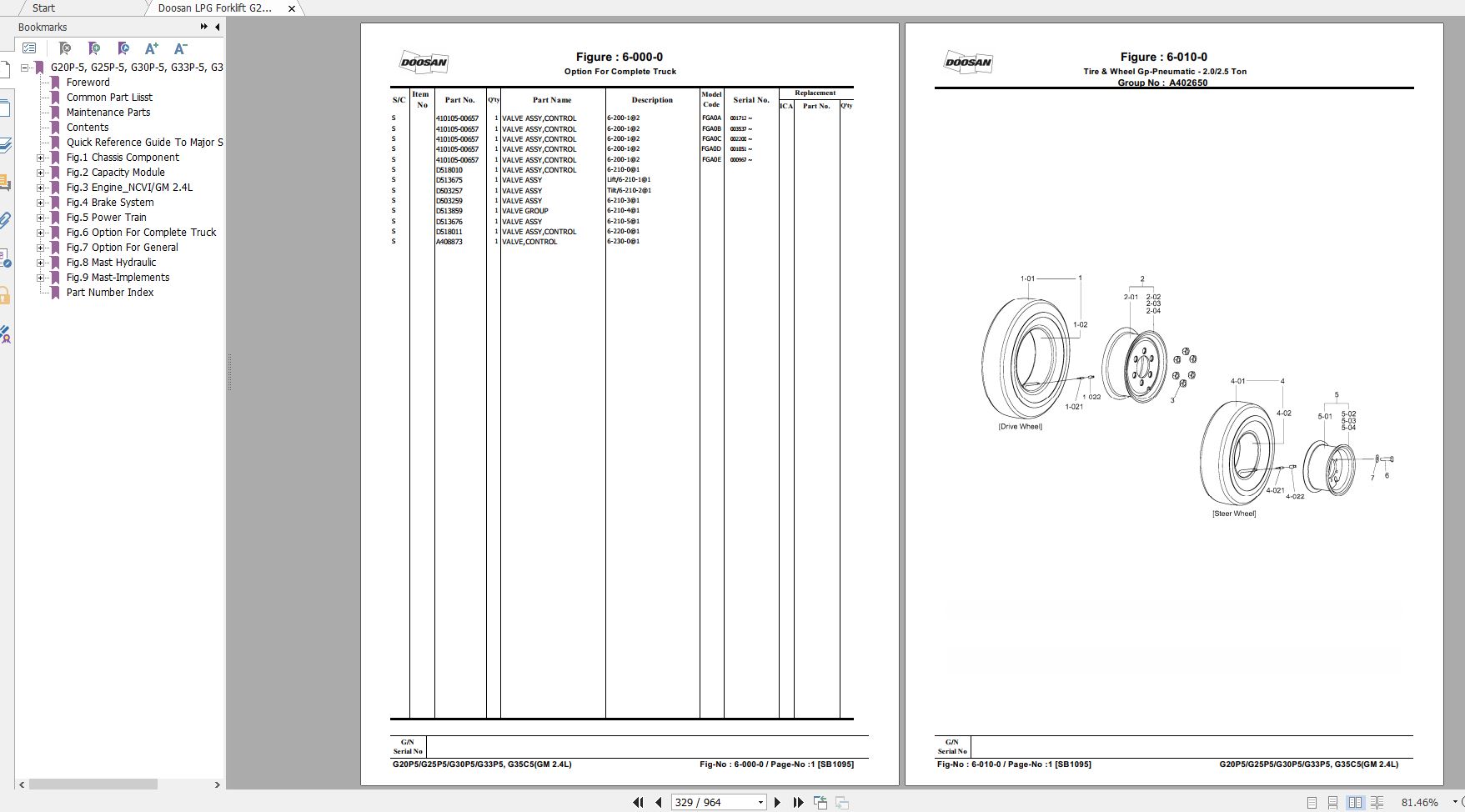 Doosan G20P-5 G25P-5 G30P-5 G33P-5 G35C-5 Part Book SB1095E15