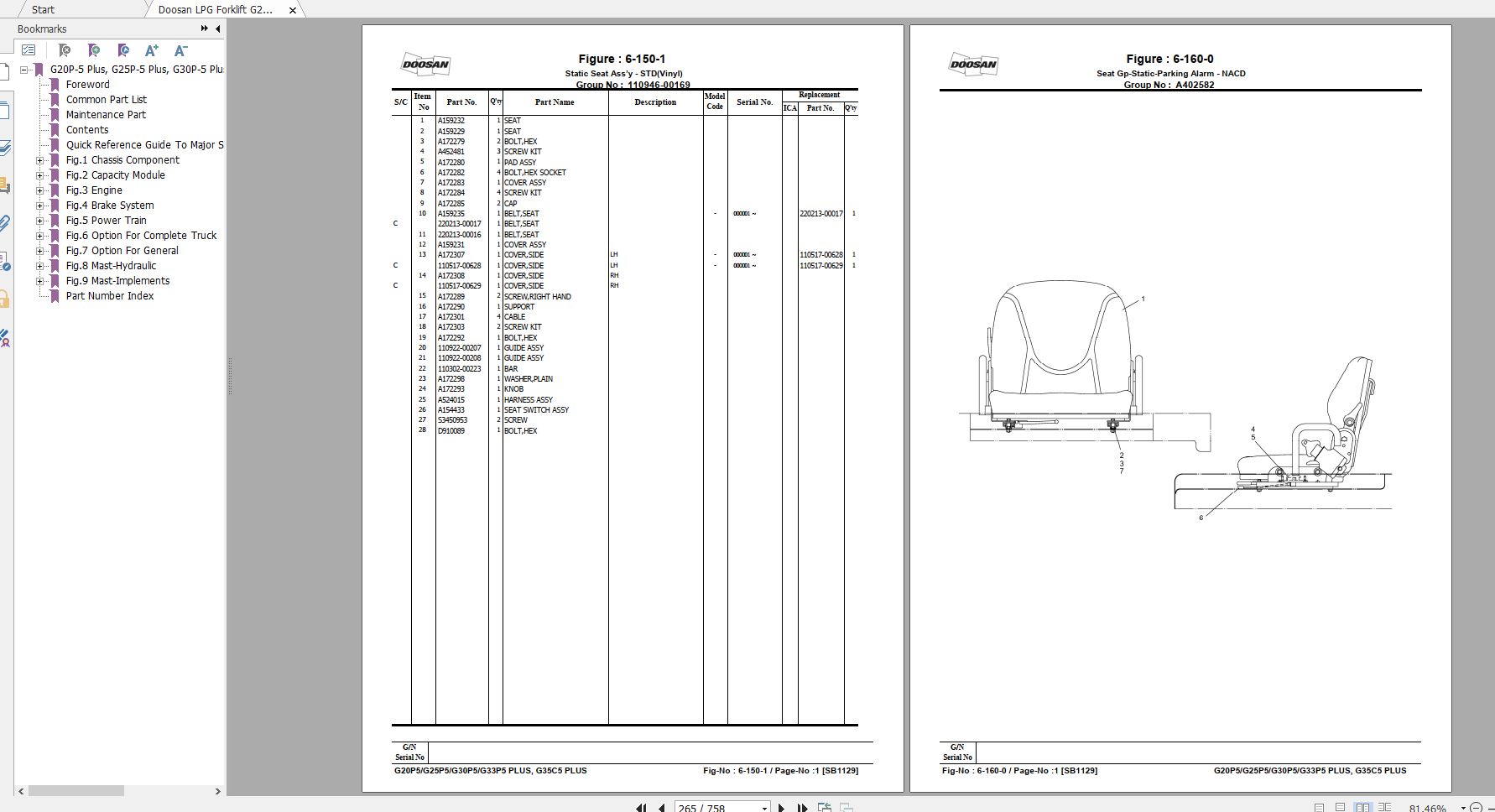 Doosan G20P-5 Plus G25P-5 Plus G30P-5 Plus G33P-5 Plus G35C-5 Plus Part Book SB1129E09