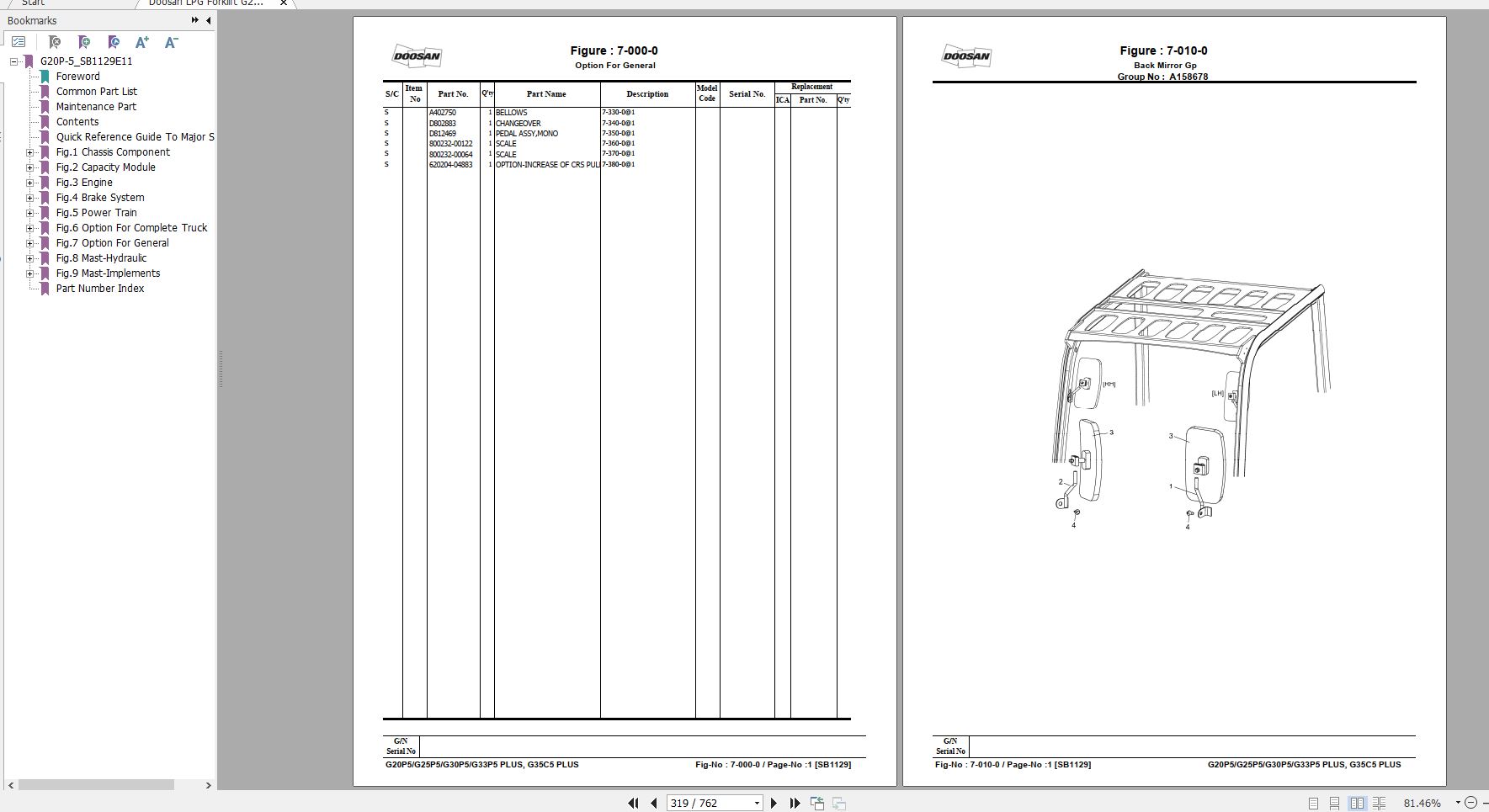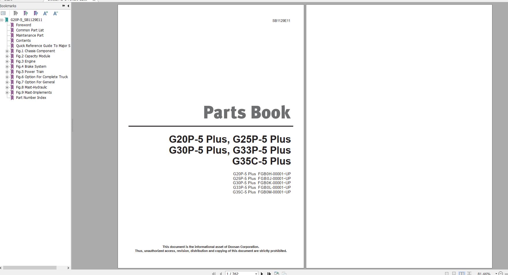 Doosan G20P-5 Plus G25P-5 Plus G30P-5 Plus G33P-5 Plus G35C-5 Plus Part Book SB1129E11