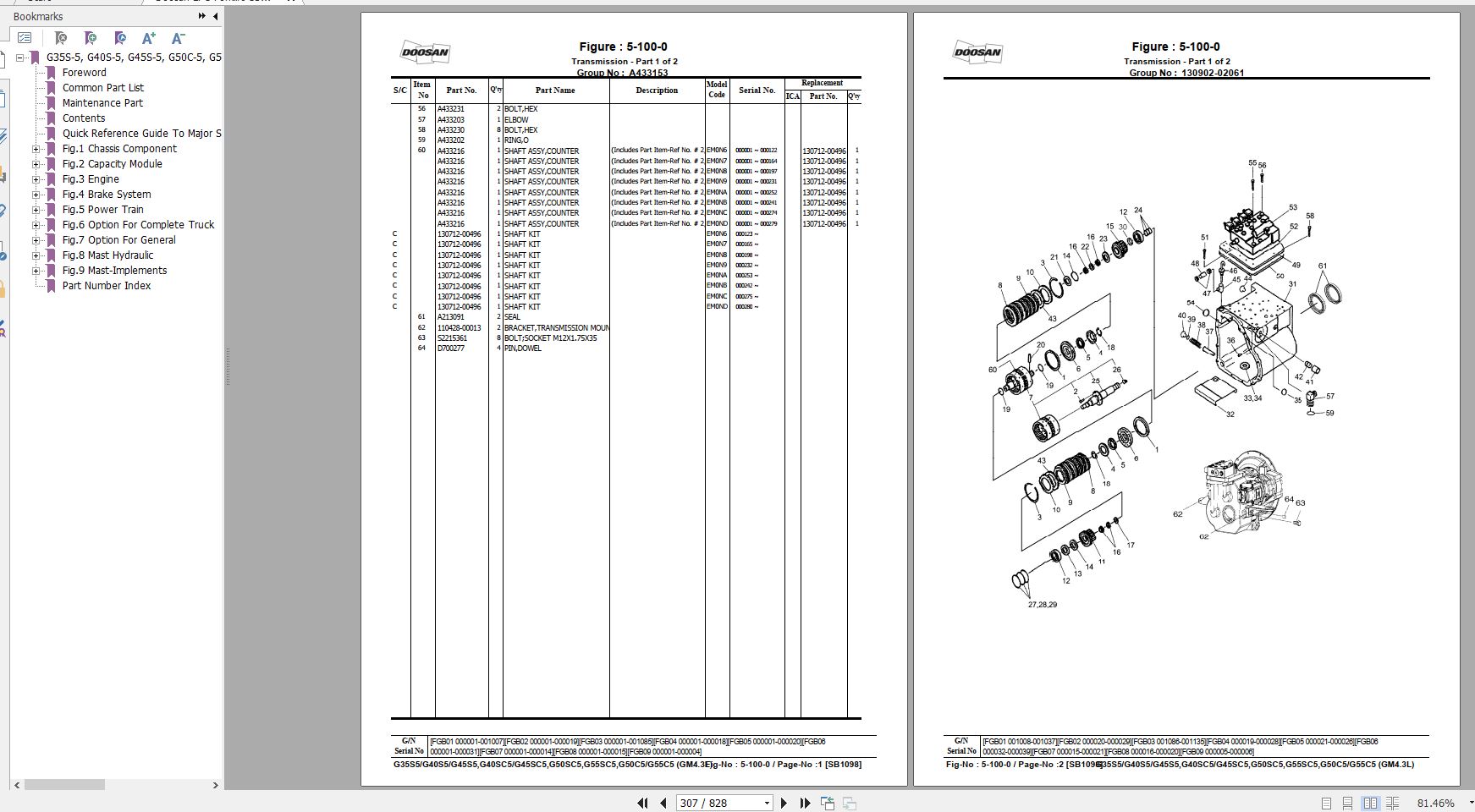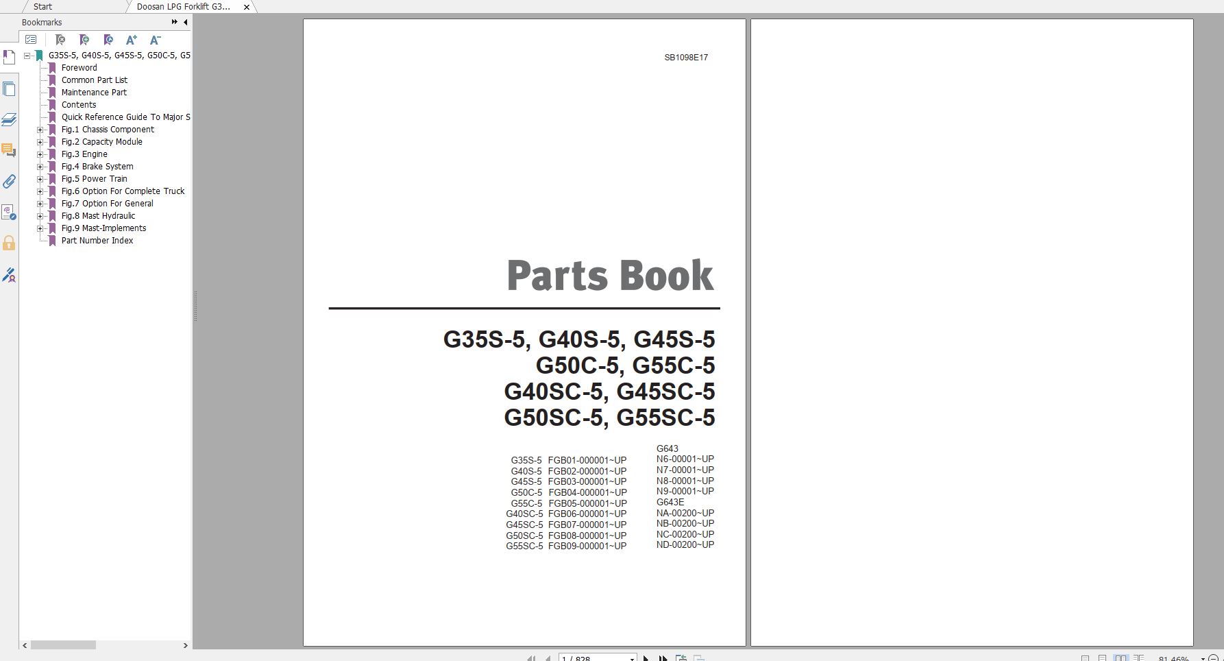 Doosan G35S-5 G55SC-5 Part Book SB1098E17