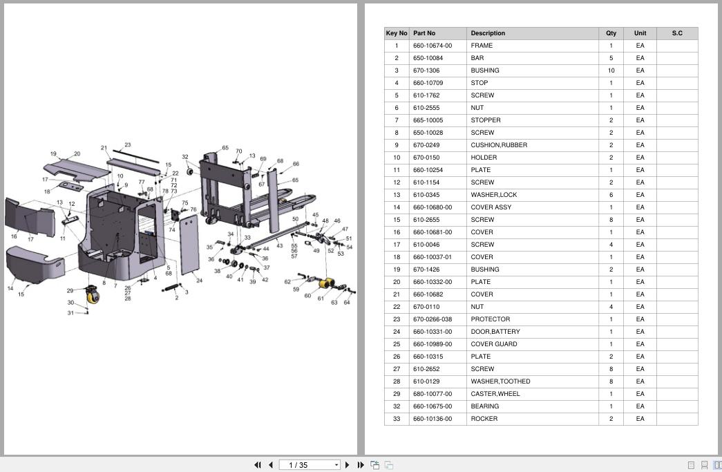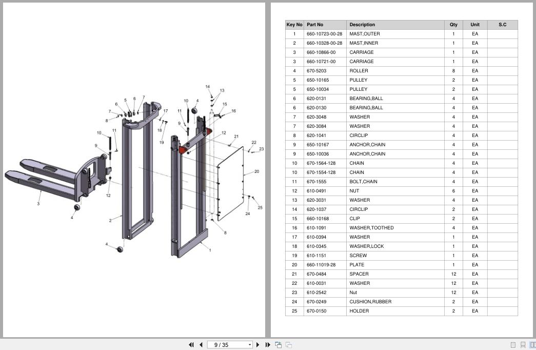 Machine Model: Doosan LEDS14I, LEDS16I, LEDS14I-TF, LEDS16I-TF, LEDS14I-SF, LEDS16I-SF, LEDS14I-DF, LEDS16I-DF Pallet Truck