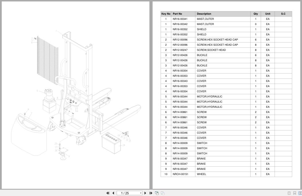 Machine Model: Doosan SSTK1000, SSTK1500, SSTK1000A, SSTK1500A Stacker