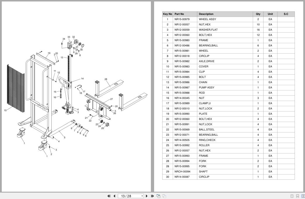 Machine Model: Doosan STK50, STK100, STK150 Stacker
