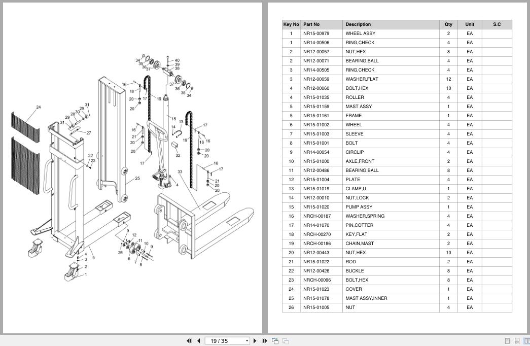 Machine Model: Doosan STKE50, STKE100, STKE150 Stacker