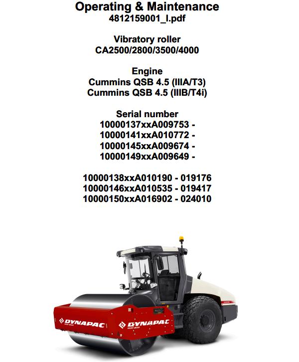 Dynapac CA2500 CA2800 CA3500 CA4000 Operation and Maintenance Manual