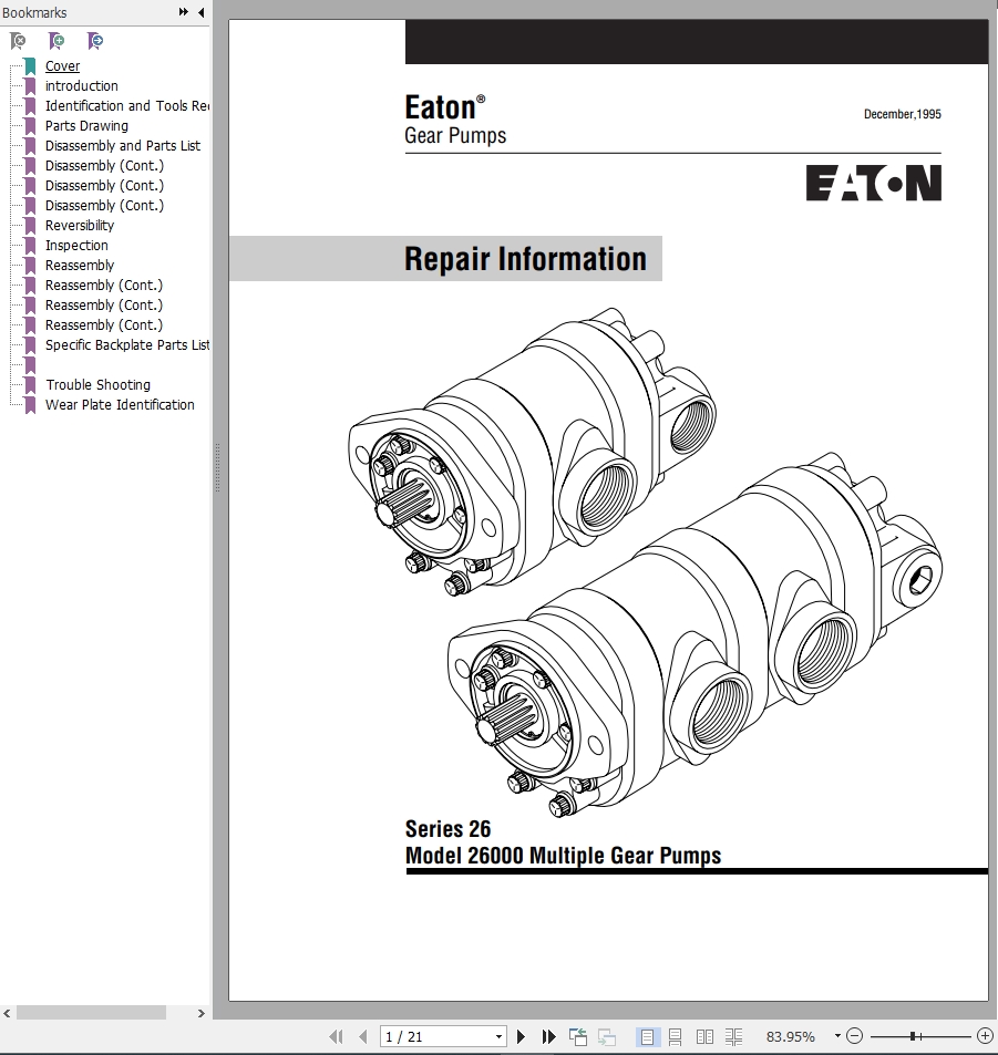 Eaton 26000 Series 26 Multiple Gear Pumps Service Manual 915105