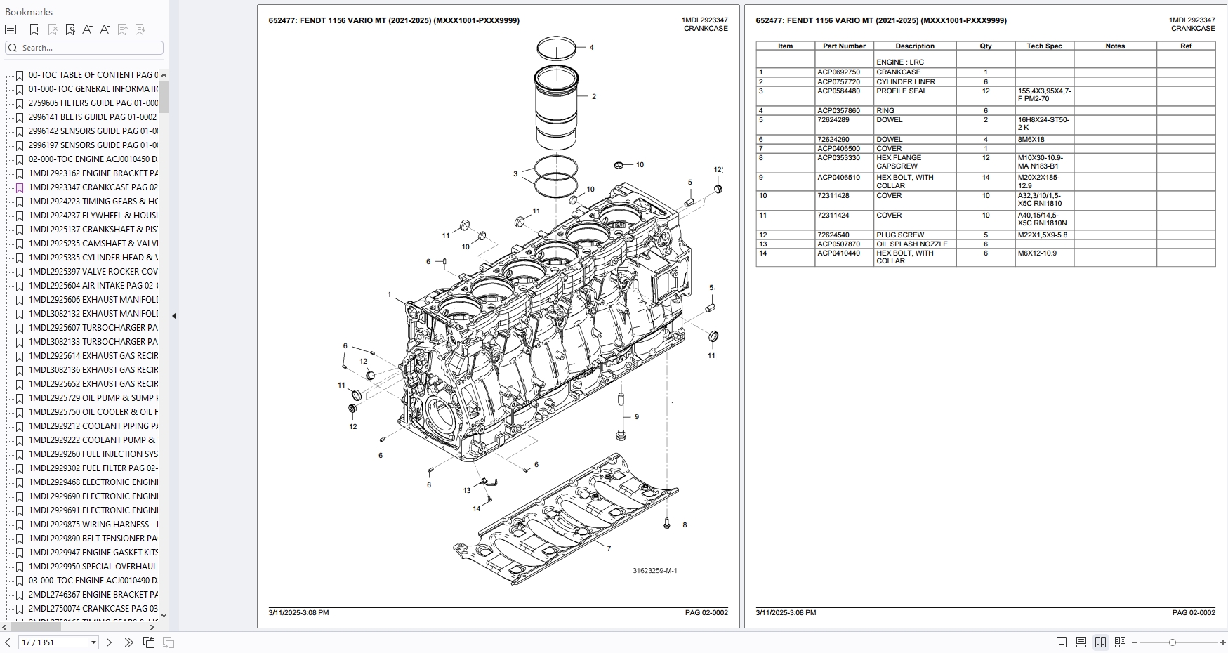 Fendt 1156 VARIO MT (2021-2025) (MXXX1001-PXXX9999) Part Catalog