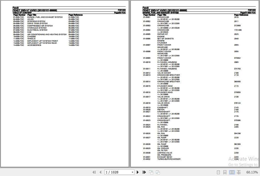 Fendt 208V+F Vario Parts Catalog F261000 01.2020