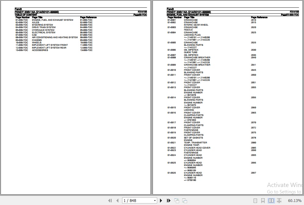 Fendt 209V NA Parts Catalog F214105 01.2020
