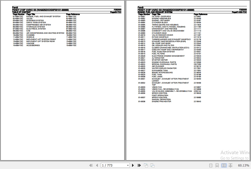 Fendt 210P Vario S3 Parts Catalog F252000 01.2020
