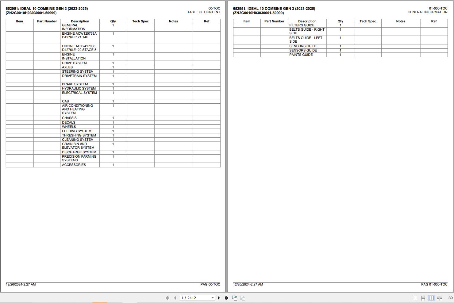 Fendt IDEAL 10 GEN 3 Part Catalog 2023-2025