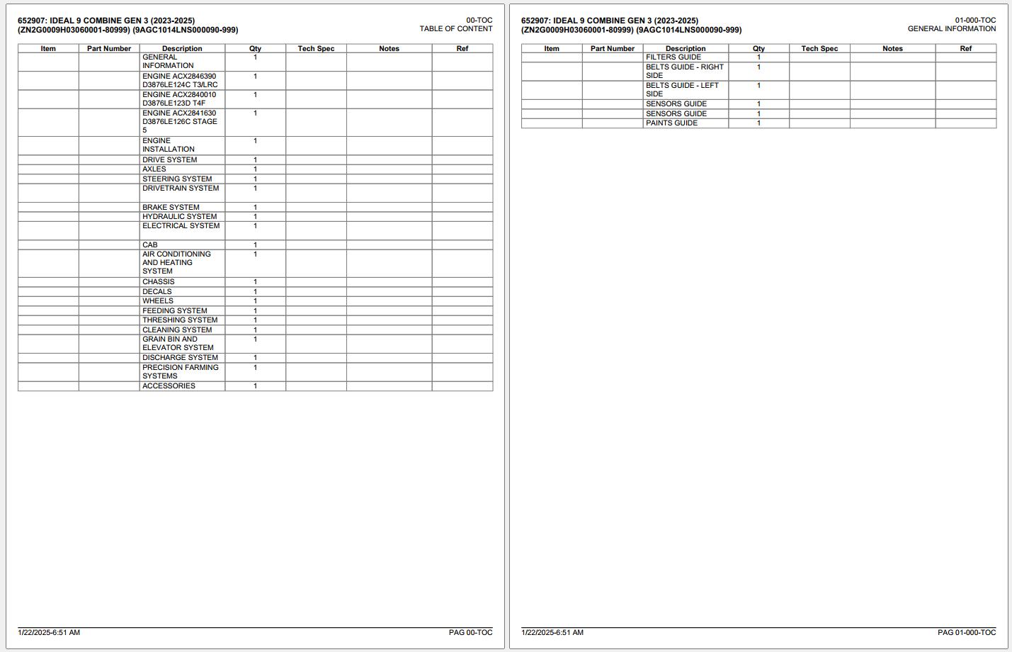 Fendt Ideal 9 GEN3 Parts Catalog 2023-2025