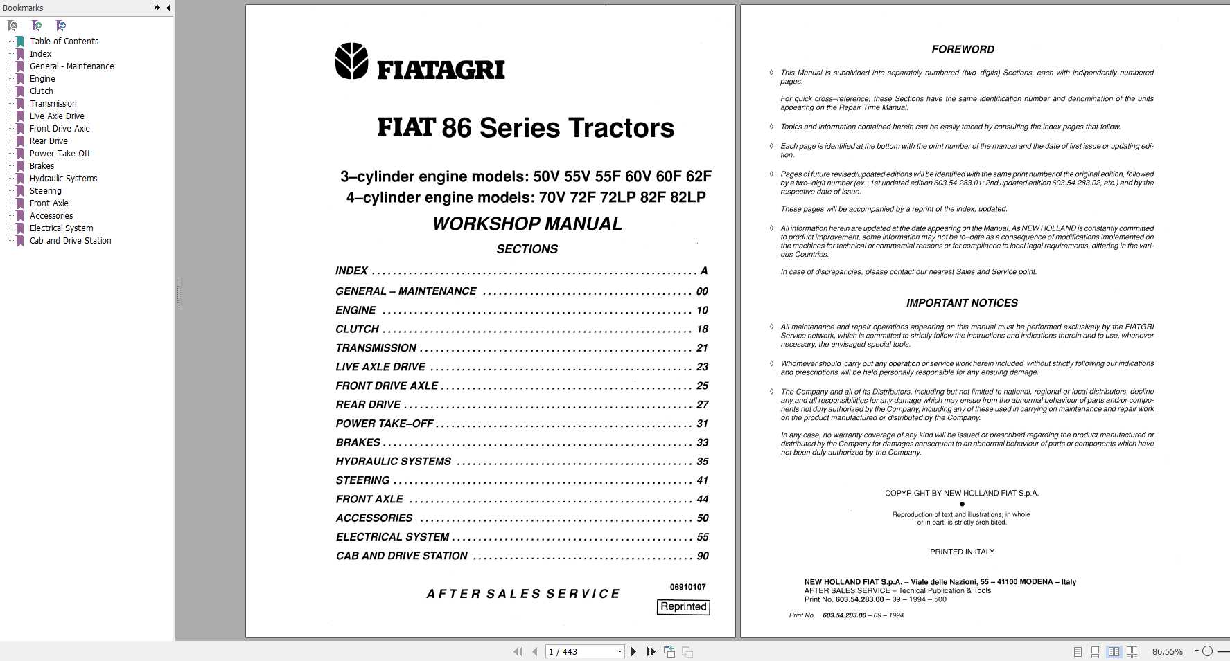 Fiat Agri 86 Series Workshop Manual 06910107