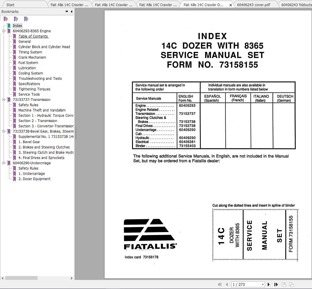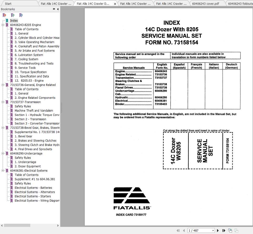Fiat Allis 14C with 8205 Service Manual 73158154 Covers and Foldout