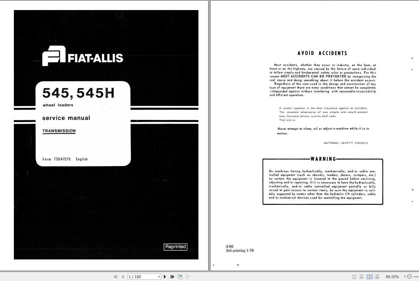 Fiat Allis 545 545H Transmission Service Manual 73047275