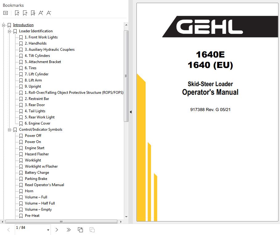 GEHL 1640E 1640 Operator's Manual 917388G