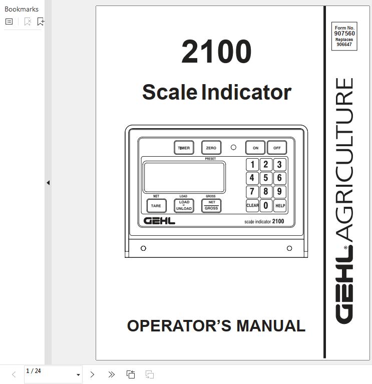 GEHL 2100 Operators Manual 907560A