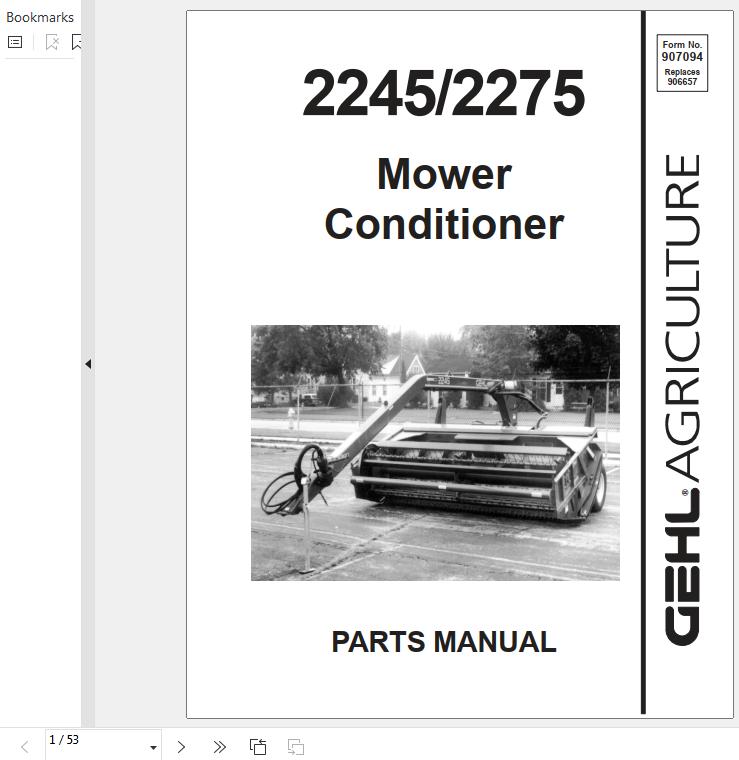 GEHL 2245 2275 Parts Manual 907094ASize: 1.3 MBMachine: Mower ConditionerMachine Model: 2245 2275Page: 53 PagesForm Number: 907094A