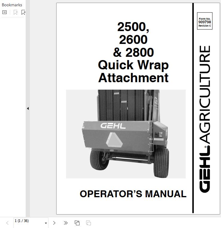 GEHL 2500 2600 2800 Operators Manual 909798C