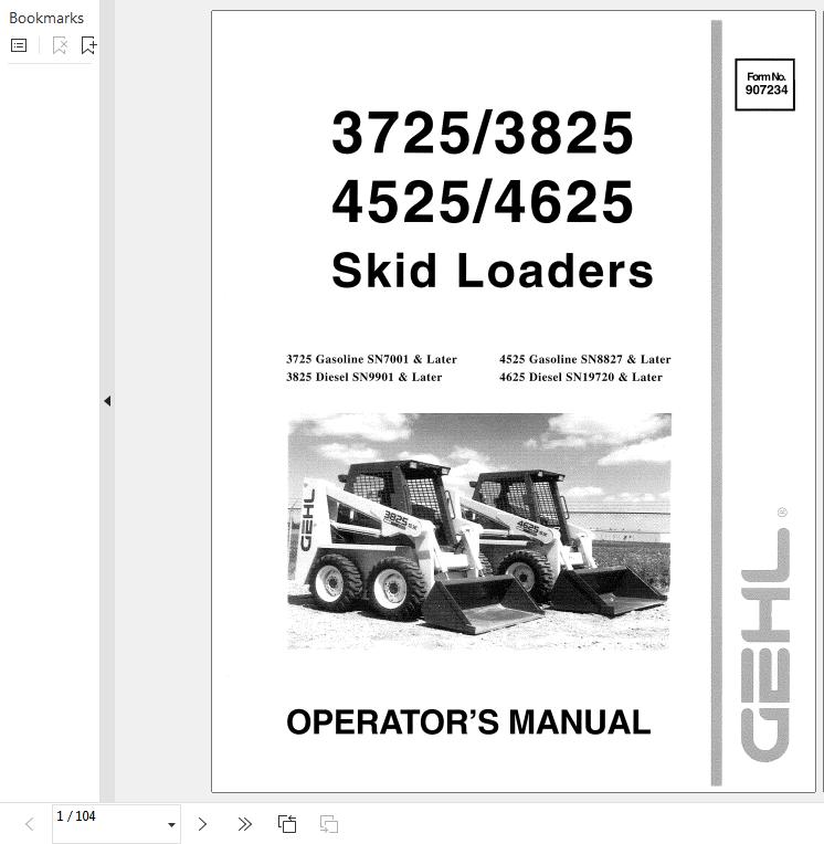 GEHL 3725 3825 4525 4625 Operators Manual 907234B