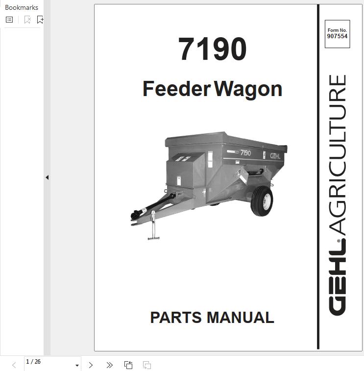 GEHL 7190 Parts Manual 907554ASize: 521 KBMachine: Feeder WagonMachine Model: Publication Date: 1997Page: 26 PagesForm Number: 907554A