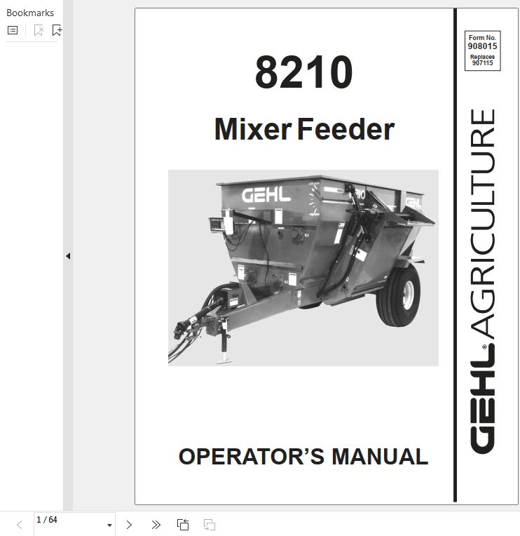 GEHL 8210 Operators Manual 908015ASize: 1.77 MBMachine: Mixer FeederMachine Model: 8210Publication Date: 1998Page: 64 PagesForm Number: 908015A