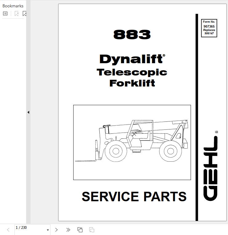 GEHL 883 Parts Manual 907365ASize: 2.52 MBMachine: Telescopic HandlerMachine Model: 883Publication Date: 1999Page: 230 PagesForm Number: 907365A