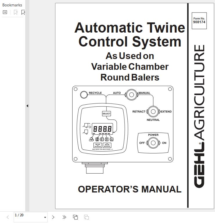 GEHL Automatic Twine Control System Operators Manual 908174A