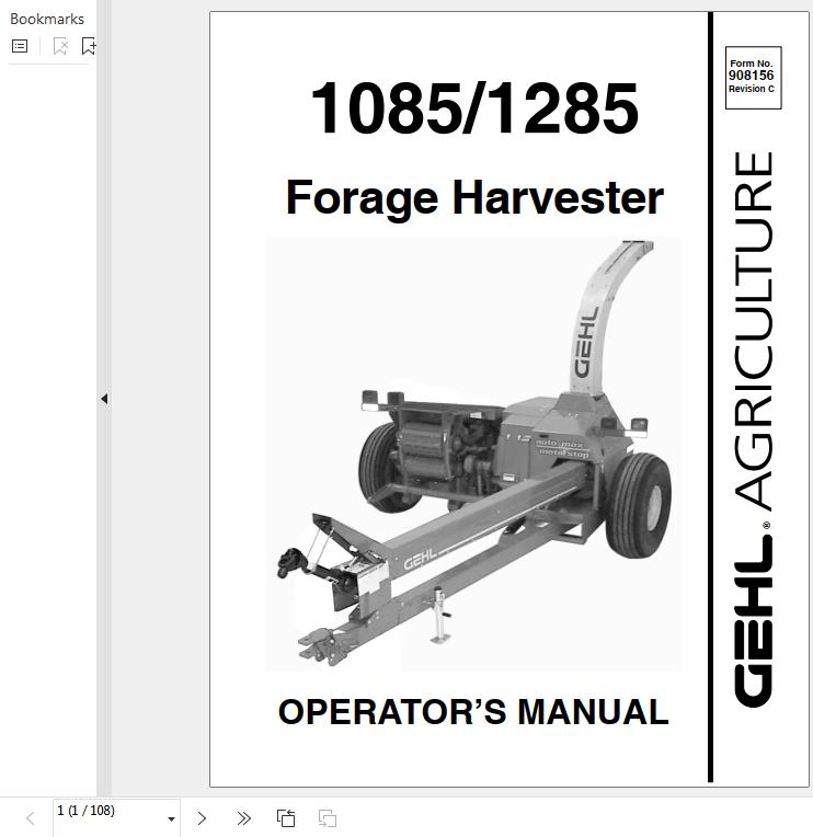 GEHL CB1085 CB1285 Operators Manual 908156C