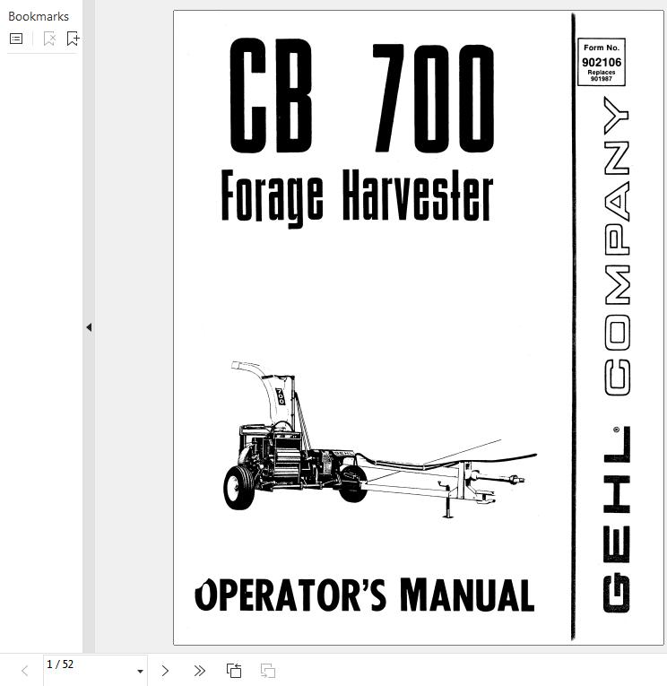 GEHL CB700 Operators Manual 902106ASize: 10.6 MBMachine: Forage HarvesterMachine Model: CB700Page: 52 PagesForm Number: 902106A