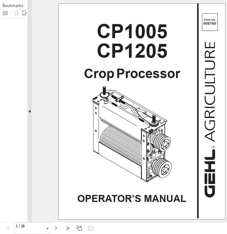 GEHL CP1005 CP1205 Operators Manual 908160B
