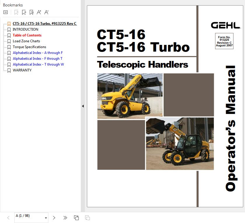 GEHL CT5-16 CT5-16 Turbo Operators Manual 913225C