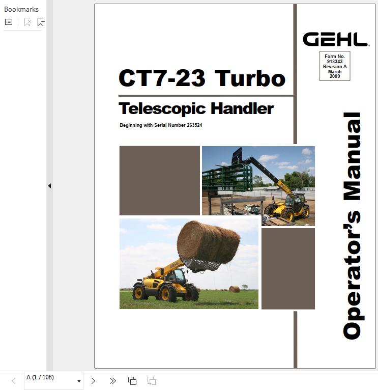 GEHL CT7-23 Turbo Operators Manual 913343A