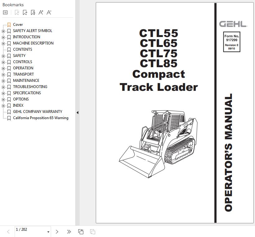 GEHL CTL55 CTL65 CTL75 CTL85 Operators Manual 917299E