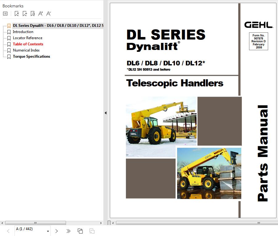 GEHL DL6 DL8 DL10H DL12 Parts Manual 907878D