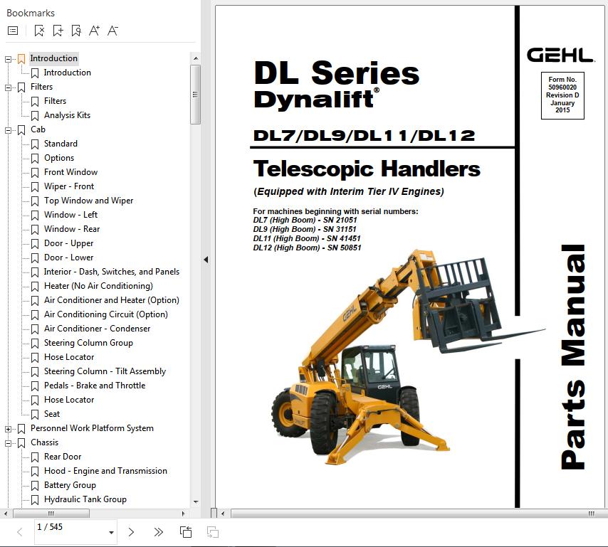 GEHL DL7 DL9 DL11 DL12 Parts Manual 50960020D